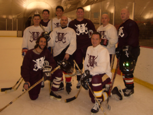 From left to right: (Standing) Jay Corrigan ('93), Jack Dennehy ('91), Eric Bulis ('92), Pat Pilla ('89), Brian McNeill ('91), Bryan Delaney ('90), Drew D'Emic ('91); (Kneeling) Chris Santangelo ('91), Chris Crotty ('90)